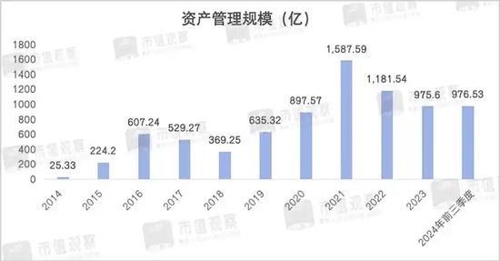 2022年、2023年连续两年陷入巨额亏损,分别为-107.28亿和-275.7亿,共亏损382.98亿。其管理规模也持续缩水。