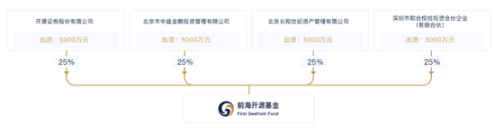 2013年,开源证券和北京市中盛金期投资管理有限公司、北京长和世纪资产管理有限公司、深圳市合投信投资合伙企业(有限合作)联合成立起前海开源基金,各持股25%。