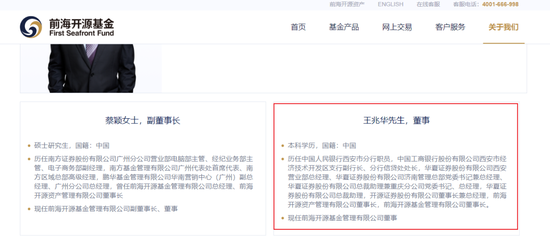 不过,二人之后仍在公司担任其他职务。王宏远担任前海开源基金的终身顾问以及前海开源人公益慈善基金会的理事长。王兆华则在前海开源基金担任董事,其名字至今还挂在公司官网上。