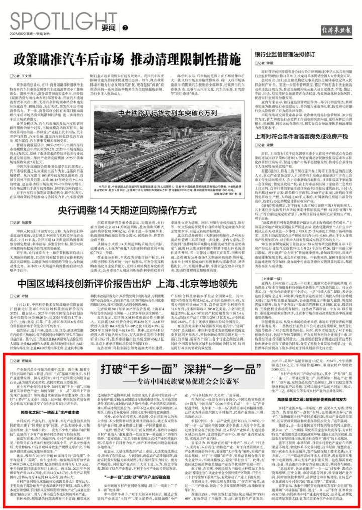 在乡村产业振兴过程中,如何打破“千乡一面”,因地制宜发展特色产业?如何深耕“一乡一品”,联结上下游实现产业融合?如何通过政策创新和要素保障,真正做好“土特产”大文章?围绕上述问题,中国民族贸易促进会会长蓝军日前接受了《经济参考报》记者专访。